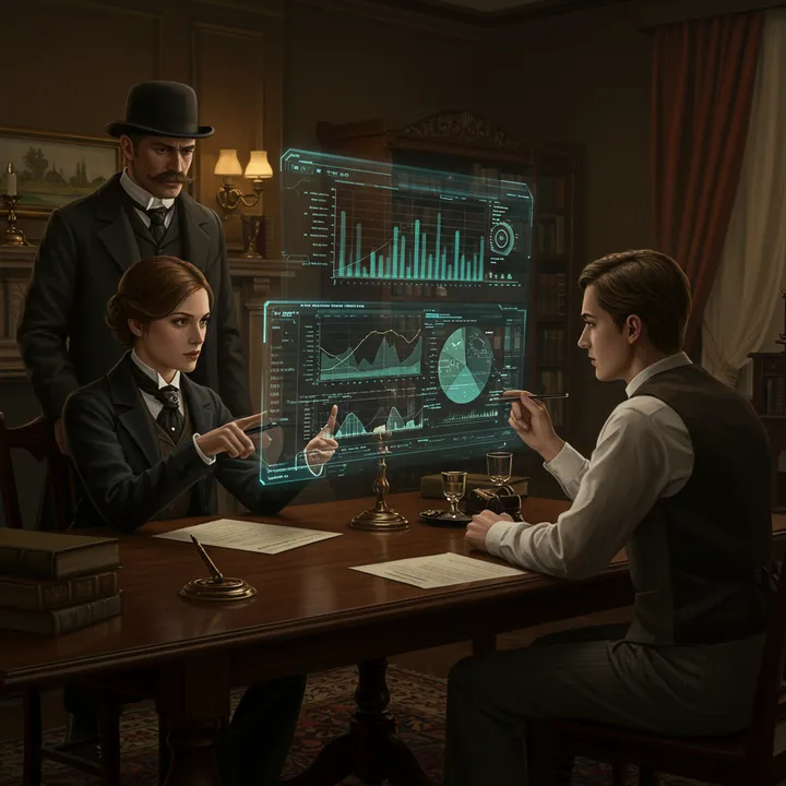 TechnoVision Central のCEO、マーカス・コバレクは困惑を隠せずにベイカー街221Bを訪れた。彼の手には、華々しいプレゼン資料と、それとは対照的な惨憺たる業績データが握られていた。